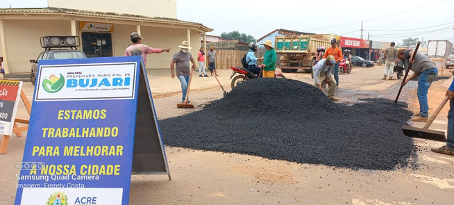 A Prefeitura do Bujari dando prosseguimento às ações de melhorias no município através da Secretaria Municipal de Infraestrutura, realizou mais uma operação tapa-buracos na Rua do Fórum e na Rua José Pereira Gurgel.