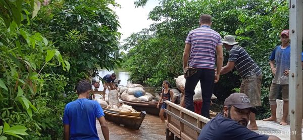 Os produtores de castanhas também receberam apoio da prefeitura e tiveram auxílio para escoar 300 latas de castanha que sairám do ramal Linha Nova por água.